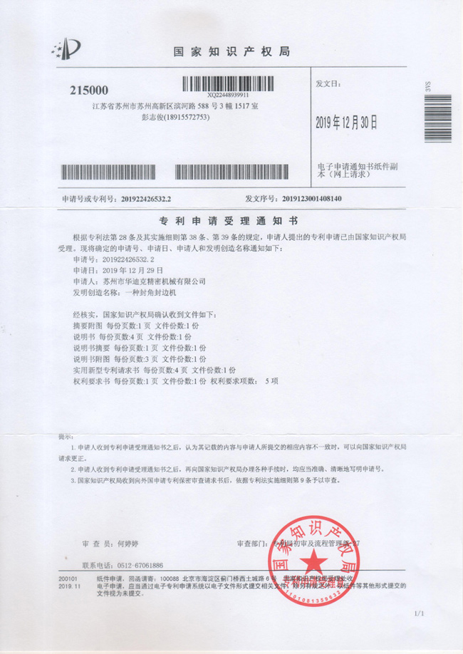 專利申請受理通知書201922426532.2